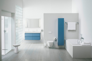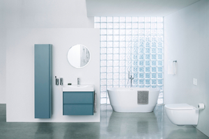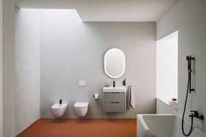 22 Waschtisch-Varianten, WCs, Bidets, ein Dusch-WC, eine eigene Armaturenserie sowie passende Dusch- und Badewannen aus dem PRO-Sortiment und zwei kompatible Möbelprogramme (Base 2.0 und Juna) – das komplette Bad lässt sich mit einem Hersteller, einem Ansprechpartner und einer Logik spezifizieren. Das vereinfacht die Schnittstellenkoordination in der Ausschreibung und die Abstimmung zwischen den Gewerken.