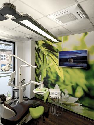 Die gesamte Kommunikationsverdrahtung in den Versorgungsschächten über vier Etagen wurde auf Widerstand geprüft – in den einzelnen Etagen mussten alle Kommunikationsleitungen getauscht werden. Bei all diesen Arbeiten bestand die Besonderheit darin, dass Deckenöffnungen nur bedingt möglich waren und zum großen Teil alle Leitungen mit Rücksicht auf den laufenden Praxisbetrieb geduldig gefädelt werden mussten. Alle Aufgaben wurden erfolgreich gemeistert. Seitdem kann das zahnmedizinische Zentrum Dentale die Vorteile der neuen Klimatechnik vollständig nutzen.