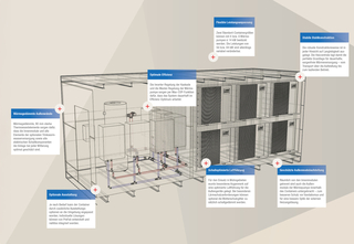 Die externe Heizzentrale wird am PreFab Standort Kleve vorgefertigt und nach eingehender Systemprüfung zum Bestimmungsort gebracht.
