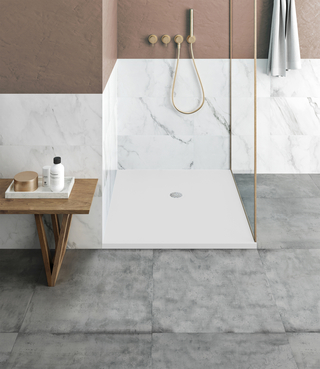 Duschflächen aus Mineralguss in verschiedensten Strukturen, Formen und Farben sorgen für Gestaltungsfreiheit im Bad.
