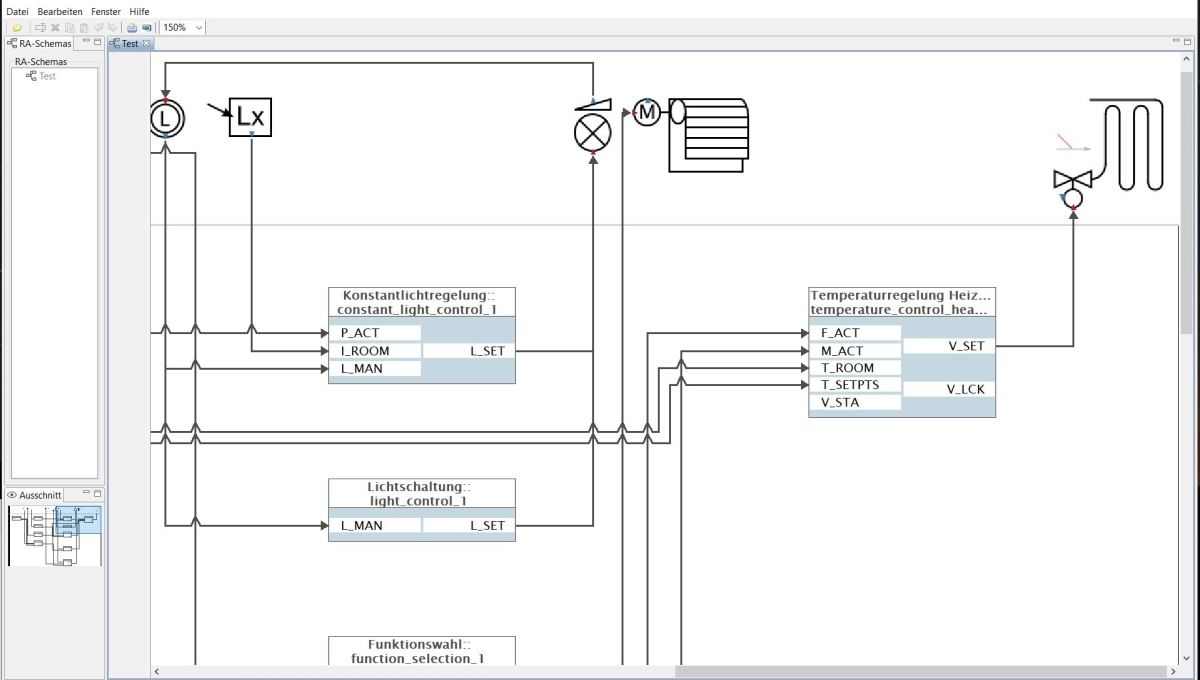 Bild 4: Das Bild zeigt das „Auteras“-Tool „RAS-Viewer“ zum automatischen Zeichnen der von der KI generierten Automationsschemata (auf dem Bildschirm ist ein Ausschnitt eines Schemas zu sehen; das gesamte Schema ist auf der linken Bildleiste unten verkleinert dargestellt).