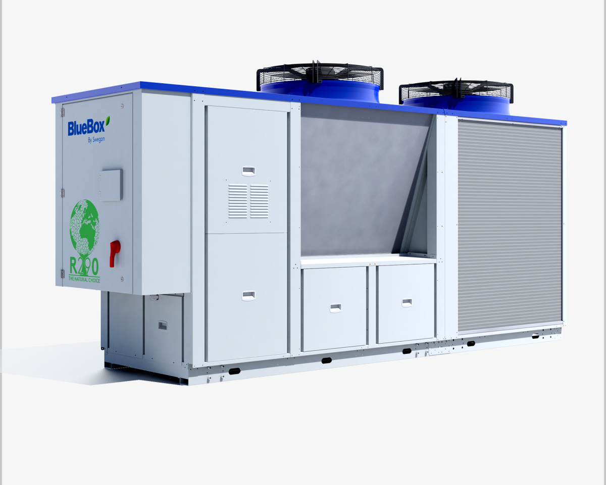 Swegon bietet mit der „TITAN Sky Hi FC“-Serie einen hocheffizienten Kaltwassererzeuger mit separatem Freikühl-Register. Entwickelt wurde sie als Antwort auf die steigende Nachfrage nach nachhaltigen und zukunftsfähigen Lösungen für Komfortklima- und Prozesskühlungsanwendungen. Die Geräte der Serie sind für die Außenaufstellung konzipiert und verfügen über frequenzgeregelte, halbhermetische Hubkolbenverdichter mit hocheffizienten, drehzahlgeregelten Axialventilatoren. Das Herzstück der Serie ist die separate Freikühlsektion mit eigenem Register, die im gleitenden Betrieb arbeitet. Ab einer Außentemperatur von etwa 2 K unterhalb der Rücklauftemperatur des Mediums wird ein Großteil der Wärmeenergie über das Freikühlregister abgeführt. Als Kältemittel kommt Propan zum Einsatz – ein natürliches und zukunftssicheres Medium mit hervorragenden thermodynamischen Eigenschaften. Durch den Einsatz des natürlichen Kältemittels Propan erfüllen die Kaltwassererzeuger die Voraussetzungen unter anderem für eine BAFA-Förderung.