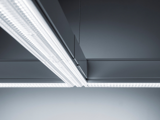 Zusätzliche optische Komponenten wie Linsen, Reflektoren oder Prismenfolien ermöglichen eine gezielte Lichtlenkung. Symmetrisch breitstrahlende Linsen sorgen für eine flächige Allgemeinbeleuchtung in offenen Arbeitsbereichen, während asymmetrische oder tiefstrahlende Linsen eine zielgerichtete Ausleuchtung vertikaler Flächen ermöglichen – etwa in Regalzonen, an Server-Racks in Rechenzentren oder an Maschinenarbeitsplätzen. Dadurch lassen sich Blendung, Lichtverschmutzung und Energieverluste minimieren. Die Integration blendfreier Optiken (UGR < 19) eröffnet zudem vielseitige Einsatzmöglichkeiten in Büro- und Schulungsbereichen.