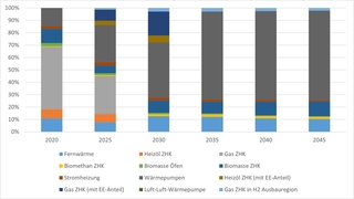 Bild 2: Marktanteile neu installierter Wärmeversorgungssysteme in den Zielszenarien im Zeitraum 2025 bis 20453.