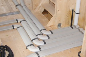 Gut fünf Monate hat der ausführende Installateur Bernd Brunner ununterbrochen auf der Baustelle gearbeitet, bis Kalt- und Warmwasser, Abwasser, Fußbodenheizung, das Nahfernwärmenetz und die kontrollierte Wohnraumlüftung installiert waren. „Die Wohnraumlüftung habe ich meist allein montiert. Das hat bestens funktioniert und die Montagekosten gering gehalten“, sagt der Chef eines Münchener Meisterbetriebs. Egal ob die Tunnel-Rohre im Boden, die Classic-Rohre im Wandschacht oder die Übergänge von Tunnel- zu Rundrohr – die Installation ging flott und einfach von der Hand. Spezielle Dicht- und Verbindungselemente fügten die einzelnen Teile fest zusammen, und Verbindungsschellen mit Sichtfenster fixierten die Rohre zusätzlich. „Standardwerkzeug wie Cuttermesser und Säge haben für die Montage vollkommen genügt, wir mussten keine Spezialgeräte anschaffen“, freut sich Bernd Brunner.