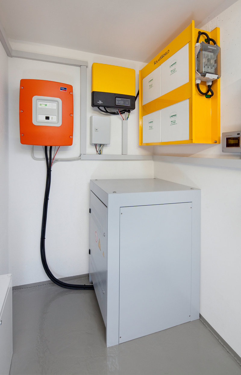 Das Energiekonzept beruht auf eine 15 kWp-Photovoltaikanlage auf dem Dach und einer erdgekoppelten Wärmepumpe. Zusätzlich sind in dem Haus zwei Batterien mit jeweils 7 und 20 kWh Speicher integriert (Bild 2).