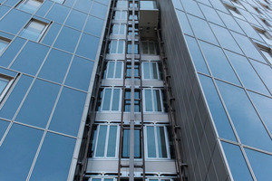Die Hütter-Aufzüge GmbH (www.huetter-aufzuege.de) stellte am Kristalltower im Holzhafen von Hamburg eine bisher einzigartige Aufzugsanlage fertig. Zwei Panoramakabinen legen mit 21 Haltestellen von der Tiefgarage bis zum Dachgeschoss einen Höhenunterschied von 66 m an der Nordfassade des gläsernen Wohnturmes in der Großen Elbstraße 57 zurück.