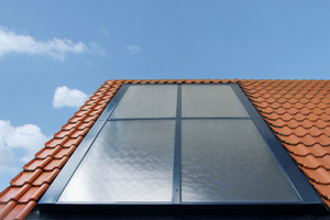 Das System mit weitgehend vormontierten Komponenten nutzt die Kollektorscheibe als Dachabdichtung. So ist eine Wanne unterhalb der Kollektoren überflüssig. Die Kollektoren werden direkt auf der Dachkonstruktion befestigt und liegen deshalb sehr flach im Dach.