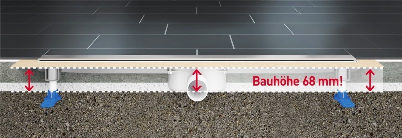 Dallmer hat eine extraflache Ausführung seiner Linienentwässerung vorgestellt: Mit der Duschrinne „CeraLine Nano“ mit einer Bauhöhe von nur 68 mm ist eine bodengleiche Dusche auch dann realisierbar, wenn nur wenig Aufbauhöhe möglich ist, etwa beim Umbau oder der Modernisierung alter Bäder. Die in Längen von 50 bis 200 cm lieferbare Duschrinne hat ein vormontiertes extraflaches Ablaufgehäuse und wird – mit dem Vorteil eines einseitigen Gefälles – direkt vor der Wand oder beliebig in der Fläche eingebaut. Trotz der kompakten Bauweise erreicht die Duschrinne eine Ablaufleistung von 0,5 l/s nach DIN EN 1253. Falls eine höhere Leistung gewünscht ist, kann die Duschrinne mit zwei Abläufen eingesetzt werden, ab 130 cm Länge ist das Standard.
