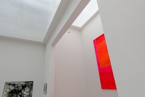 Dass der Tageslichteinfall im Rauminneren homogen gestreut wird, dafür sorgen zudem fünf jeweils über den einzelnen Oberlichtsälen eingezogene horizontale Glaszwischendecken (Gesamtfläche 450 m2) und darunter als weitere Deckenebene aufgehängte, in den Räumen sichtbare Scheiben aus satiniertem Kunststoff. Durch die Klimaverglasung der Glaszwischendecken ist zudem der Dachraum unter der Oberlichtkonstruktion wärmetechnisch entkoppelt und dient als Pufferraum.