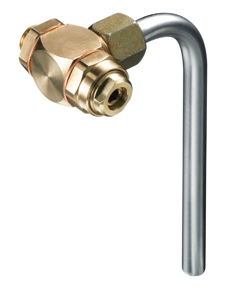 Das Ventil wird einfach in die passende Prüfvorrichtung geschraubt und mit der offenen Flamme gründlich abgeflammt. Die Abflammhähne sind in den Abmessungen 1/4“ AG, 1/2“ AG und 3/8“ AG erhältlich.