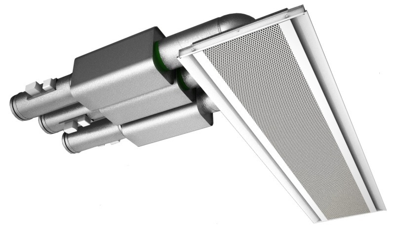 Das durchgehende und stilvolle Design, das durch eine gemeinsame Auslassfront erzielt wird, verleiht dem Klimabalken eine diskrete und elegante Ästhetik, die vor allem in Büro- und Konferenzräumen von großer Bedeutung ist – Designermöbel und Dekor werden so durch die Technik komplettiert und perfektioniert. Zudem spart die Kombination der fünf Funktionen in einem Produkt sowohl Zeit als auch Geld bei der Installation.