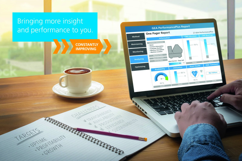 Mit „GEA PerformancePlus“ sind Service-Pakete für GEA-Kunden verfügbar, die weit über die klassische Wartung sowie Instandhaltung hinausgehen und mit denen Anlagenbetreiber ihre Industrie-4.0-Strategie ideal ergänzen können. Basierend auf den Daten eines Online-Condition-Monitorings und von Expertenwissen erstellt GEA aussagekräftige Analysen, hilfreiche Berichte sowie verlässliche Empfehlungen für den bestmöglichen Anlagenbetrieb.