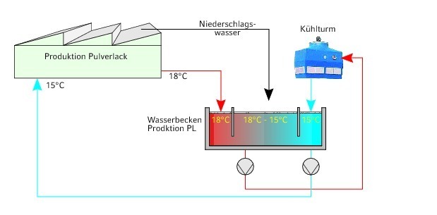 Sparpotentiale bei Ressourcen, Energie und BetriebskostenWährend es im Wohnhaus bei der Regenwassernutzung meist um den Ersatz von Trinkwasser bei Toilettenspülung und bei Bewässerung geht, sind in der Industrie die Verwendungsmöglichkeiten infolge der großen Dachflächen vielfältiger. Allein bei Kühlung mit Regenwasser anstelle von Trinkwasser entstehen mehrfach Vorteile. Die Gebühr für das Trinkwasser und für die Ableitung von Niederschlagswasser entfällt. Regenwasser muss nicht enthärtet bzw. entsalzt werden und spart so weitere Betriebskosten für Aufbereitung von Trinkwasser und für Ableitung von Abwasser. Darüber hinaus bedeutet die Vermeidung der damit verbundenen Stoffströme und der erforderlichen Energie praktizierter Umwelt- und Klimaschutz.