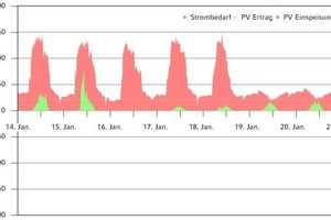 Analyse von PV-Stromerzeugung und Strombezug aus dem NetzIn einer von der Forschungsinitiative Zukunft Bau geförderten Studie wird die Machbarkeit von Plusenergieschulen [1] untersucht. Gemäß gängigen Definitionen muss das „Plus“ nur in der Jahresbilanz erzielt werden. Ein immer mehr an Bedeutung gewinnender Aspekt von Plusenergiegebäuden mit großen Photovoltaik-Anlagen ist jedoch die zeitliche Diskrepanz zwischen Photovoltaik-Stromerzeugung und Strombezug aus dem öffentlichen Netz. Möglicherweise wird PV-Strom eingespeist, wenn der Strompreis an der Börse gering bzw. sogar negativ ist und zusätzlich zu Netzproblemen führt. Mit diesem Hintergrund wird ergänzend zur Machbarkeitsuntersuchung von Plusenergieschulen eine Lastganganalyse von Strombezug und -erzeugung für eine Plusenergieschule durchgeführt und der PV-Eigennutzungsanteil für verschiedene Anlagenkonzepte ermittelt.