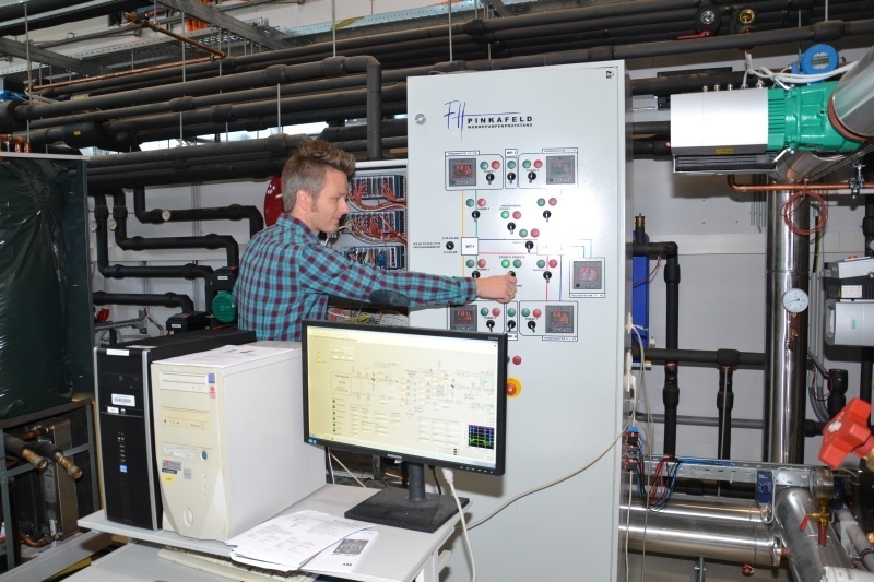 Getestet wird im Detail vor allem das Zusammenspiel von Wärmepumpen und Kältemaschinen mit dem Gebäude, da die Versorgung über diese Technologien in der Gebäudetechnik nach wie vor eine wichtige Rolle spielt. Immer interessanter werden parallel dazu Geräte, die beide Funktionen – Heizen und Kühlen – abdecken können, da im Sommer immer mehr gekühlt wird. Mit dem Hardware-in-the-Loop-Teststand werden nun Simulationszyklen geschaffen: Beispielsweise wird die Vorlauftemperatur einer Wärmepumpe gemessen und der Wert in die Gebäude- und Anlagensimulationssoftware kommuniziert. Dort wird dann das Modell eines Bürogebäudes, z.B. mit Fußbodenheizung, berechnet. Diese berechnete Rücklauftemperatur wird wiederum als reale Temperatur der Wärmepumpe zugeführt. Dann beginnt der nächste Hardware-in-the-Loop Simulationszyklus. Eine innovative Rolle hat dabei die spezielle Schnittstelle zwischen Hardware und Simulationssoftware. Mit diesem Hardware-in-the-Loop-Prinzip nimmt die FH Burgenland eine Vorreiter-Rolle im Bereich gebäudetechnischer Laborinfrastruktur ein.