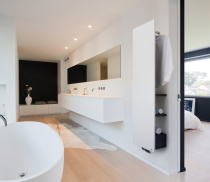 Der Hybridheizkörper Runtal-„Folio Hybrid“ verbindet Warmwasserbetrieb und elektrischen Heizbetrieb zu einem funktionalen sowie ästhetischen Gesamtkonzept: In der Mitte des Heizkörpers liegt ein elektrisch betriebenes Infrarotheizelement mit Glasoberfläche, durch dessen schnelle Reaktion Badetücher zügig vorgewärmt oder getrocknet werden können. Die umlaufende, dezent mattierte Heizfläche wird an die Warmwasser-Zentralheizung angeschlossen und sorgt aufgrund ihres hohen Anteils an angenehmer Strahlungswärme für ein komfortables Raumklima.