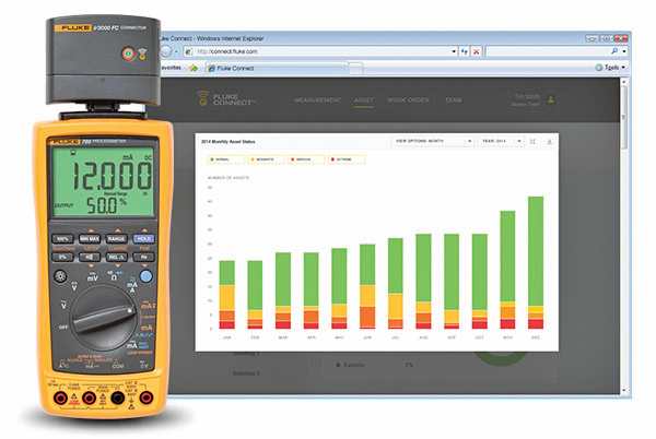 Fluke-„Connect Assets“ ändert die Art und Weise, wie innerhalb der Anlageninstandhaltung Dokumentation, Berichtswesen und Management durchgeführt werden. Das cloudbasierte System aus Software und Wireless-Messgeräten gibt Instandhaltungsmanagern eine umfassende Übersicht über alle wichtigen Komponenten einer Anlage. Dazu können Messdaten von mehr als 30 Wireless-Messgeräten aus der Fluke-„Connect“-Serie über WLAN erfasst werden. Dadurch können Instandhaltungsmanager davon überzeugt sein, dass Historie und Verlaufsdaten für die Anlagen richtig sind.