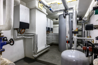 Im Keller befinden sich die vier wandhängenden Wärmepumpen-Innengeräte, mit dem separaten Warmwasserspeicher und einem Fassungsvermögen von 1.000 l. Die kompakten Innengeräte bieten eine hohe Flexibilität bei der Montage.