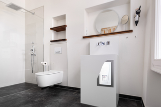 Die elektronisch geregelten Durchlauferhitzer sind platzsparend in den Waschtischen der Hotelbäder integriert und ermöglichen eine bedarfsgerechte Warmwasserbereitung.