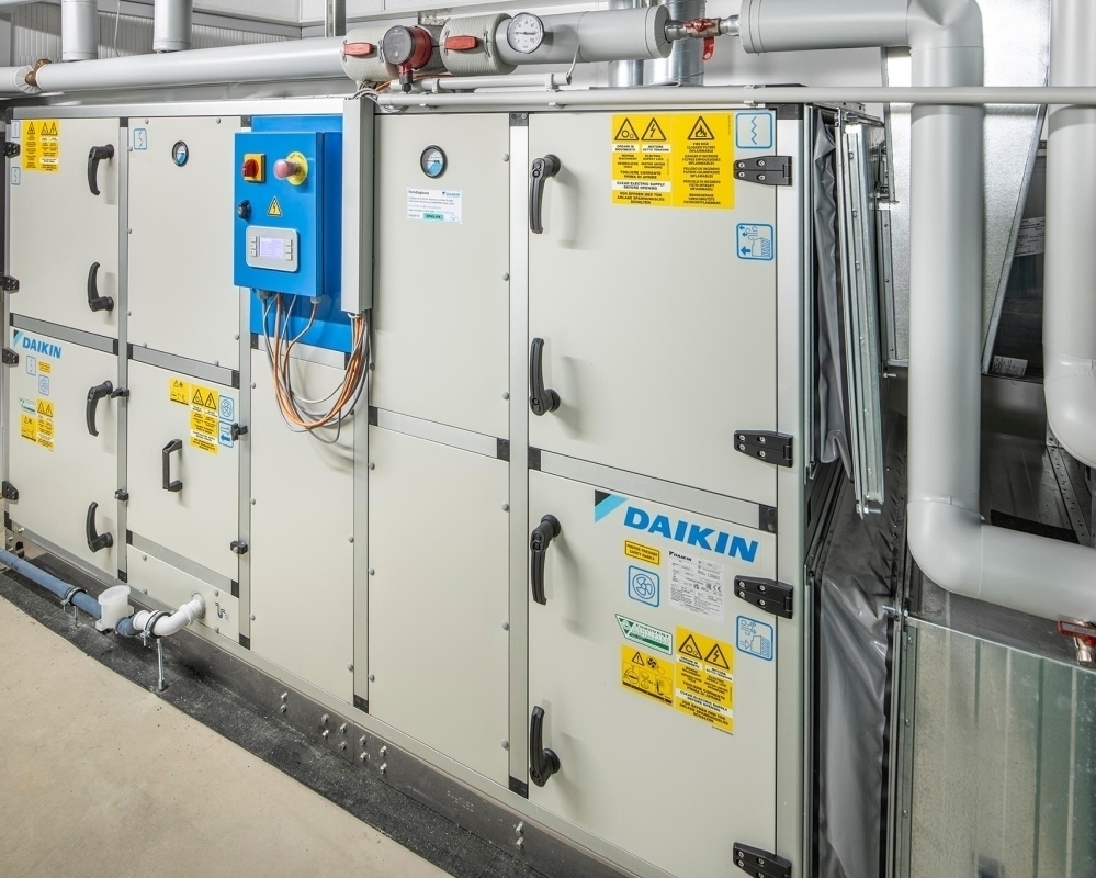 Titelbild: Die Kälteanlage des Garten-Carées in Karlsruhe besteht aus drei Absorbern, die mit umweltfreundlicher Fernwärmebetrieben werden, sowie einer Kompressions-Kältemaschinemit zwei Verdichtern und einem Rückkühlwerk. (Bild: Factor4Solutions)