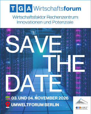04.04.2026Auf Initiative der TGA-Repräsentanz Berlin findet am 3. und 4. November 2026 im Umweltforum Berlin das 5. TGA-Wirtschaftsforum statt. Die interdisziplinäre Veranstaltung widmet sich in diesem Jahr dem Leitthema „Wirtschaftsfaktor Rechenzentrum: Innovationen und Potenziale“.