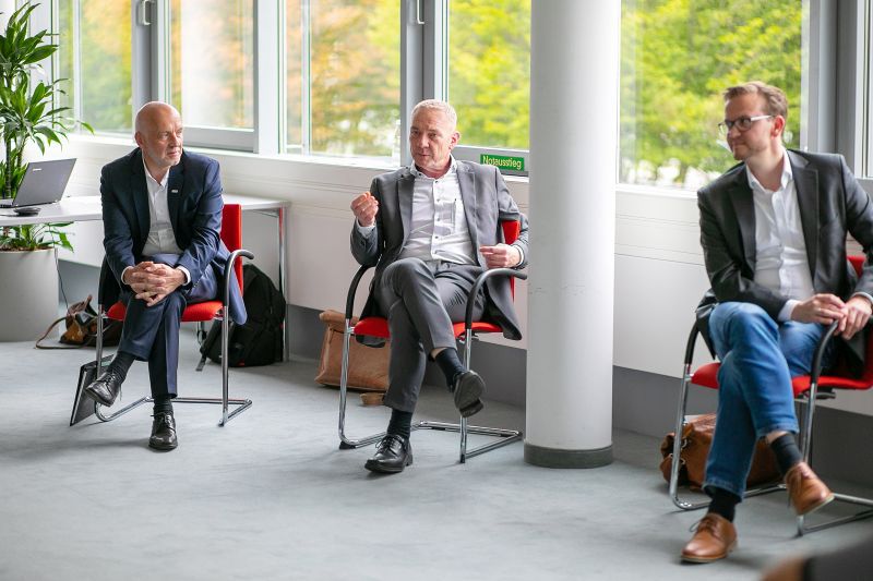 Bei der Gründung des Joint Ventures DBT Digital Building Technology dabei: Michael Jüdiges und Christian Faust (beide Geschäftsführer von Connectivity Solutions), Johannes Rump (Geschäftsführer Oventrop), Dr. Markus Klausner (CTO Viessmann Climate Solutions SE), Ulrich Ziegler (Geschäftsführer Eltako), Heinrich Johannes Gantenbrink (Geschäftsführer BEGA) und Christian Lübke (BEGA)