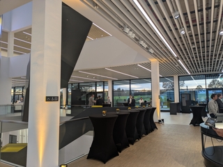 Zum Rahmenprogramm der Veranstaltung gehörten auch der Marketplace und das „FutureLAB“. Dort hatten Teilnehmende die Möglichkeit, Exoskelette direkt auszuprobieren und deren Nutzen für ergonomische Installationsarbeiten praktisch zu erleben.