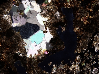 Unter dem Mikroskop erkennt man die Kristallstruktur der Kalkgesteine. Ihr mikroskopischer Aufbau verrät viel über ihre Wandlung über die Jahrmillionen und die damit einhergehenden Eigenschaften.