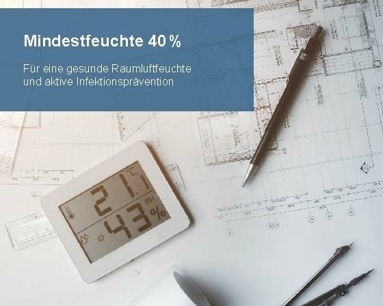 Im Flyer „Mindestfeuchte 40 %“ sind die wichtigsten Informationen zur Raumluftfeuchte zusammengefasst.
