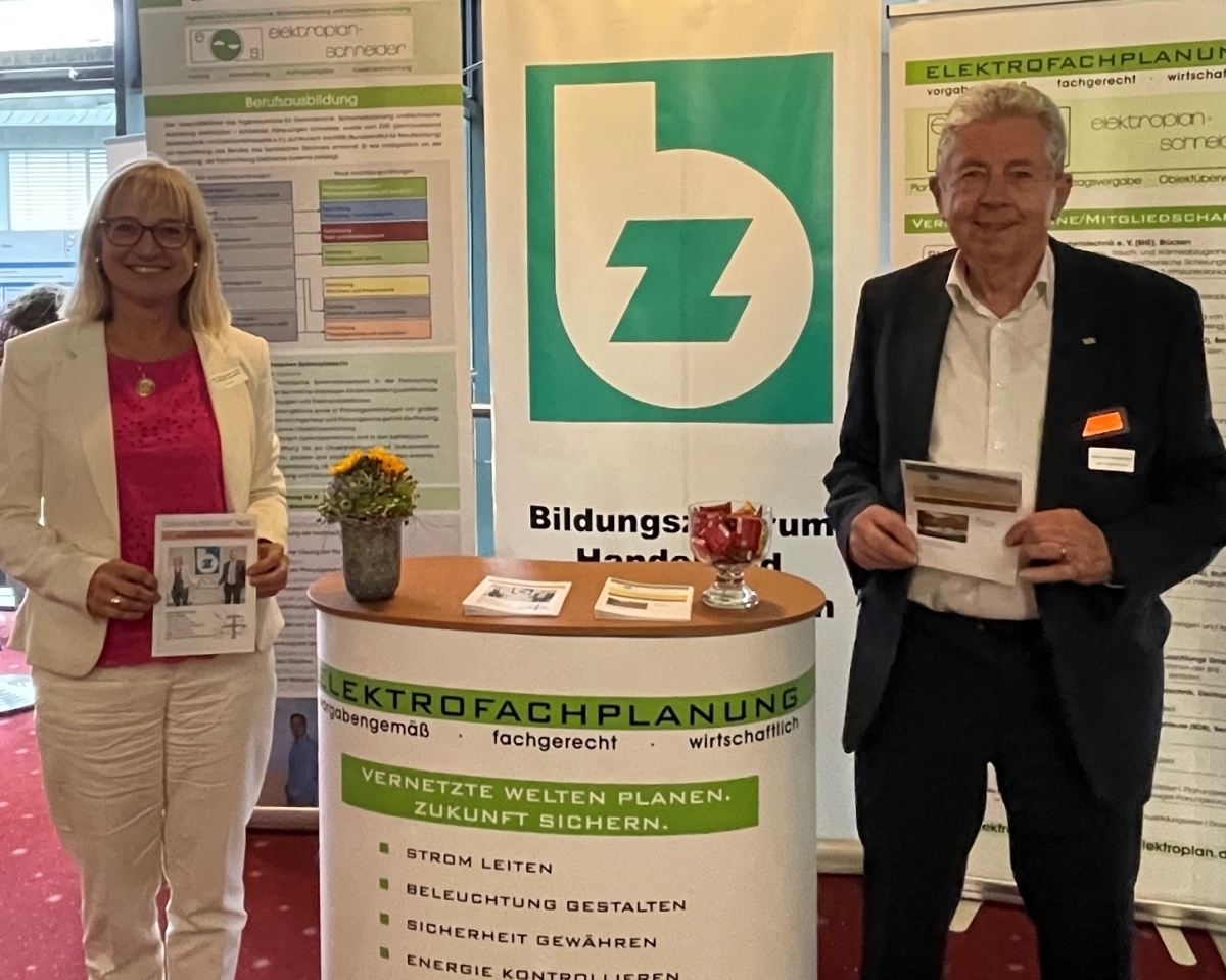 Ute Horn, Geschäftsführerin des BZH, und Unternehmer Hans-Jürgen Schneider starten erneut die Weiterbildung zum/r „Zertifizierten Fachplaner/in Elektrotechnik“ ab 19. September 2025.