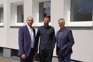 RWB-Geschäftsführer Thomas Hummelsbeck (r.) und RWB-Handlungsbevollmächtigter Bauwirtschaft Benjamin Gaidel (l.) freuen sie über den Portfolio-Deal mit Green Fusion-Geschäftsführer Paul Hock (m.).