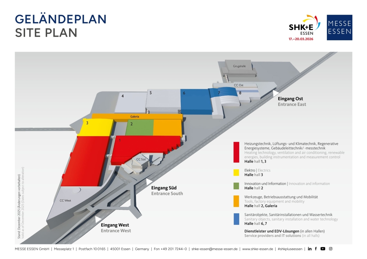 08.12.2025Vom 17. bis 20. März 2026 wird die Messe Essen erneut zur zentralen Bühne für die SHK-Branche: Mehr als 300 Aussteller aus zehn Ländern präsentieren auf der SHK+E Essen ihre neuesten Produkte und Lösungen rund um Sanitär, Heizung, Klima und Elektro. Eines der ersten großen Branchenevent des Jahres richtet sich an Fachleute aus Handwerk, Planung, Beratung, Handel und dem Dienstleistungssektor, die hier Technologien und Produkte für ihre Kunden erleben können.
