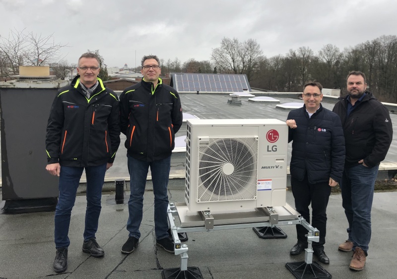 Geitekk GmbH setzt auf Lösung von LG Electronics 20.02.2020Klimatisierungslösungen, die den ökologischen Fußabdruck ihrer Nutzer verkleinern, sind am Markt sehr gefragt. Mit leistungsfähigen und dennoch nachhaltigen Lösungen präsentiert sich der Hersteller LG Electronics in diesem Umfeld als Vorreiter. Bester Beweis: In den Bremer Büroräumen der Geitekk GmbH, Experte für Gebäude- und Industrietechnik, wurde mit der „LG Multi V S R32“ die europaweit erste Mini VRF-Klimaanlage mit dem Kältemittel R32 in Betrieb genommen.
