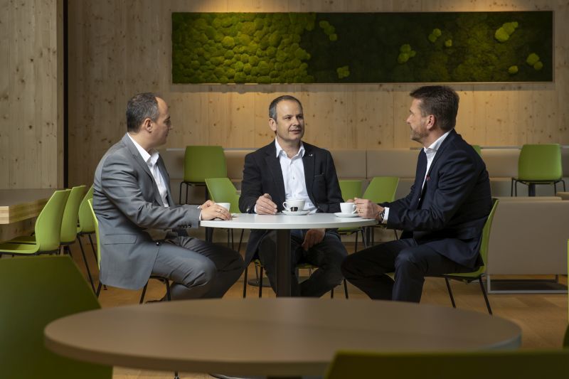 Durch die Bündelung von Kräften können sich beide Unternehmen nach eigenen Angaben wettbewerbsfähig aufstellen, um gegen die großen internationalen Player zu bestehen (v. l.): Roman Seitweger, Geschäftsführer Windhager, Peter Huemer, Geschäftsführung M-TEC Energy for Future, und Stefan Gubi, Geschäftsführer Windhager.