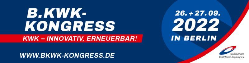 Der Bundesverband Kraft-Wärme-Kopplung e.V. lädt zum 14. B.KWK-Kongress in die Hauptstadt ein. Unter dem Titel „KWK – Innovativ, Erneuerbar!“ wird am 26. & 27.09.2022 in Berlin die Zukunft der Energieversorgung mit Kraft-Wärme-Kopplung diskutiert. Die Anmeldung ist ab sofort unter www.bkwk-kongress.de möglich.