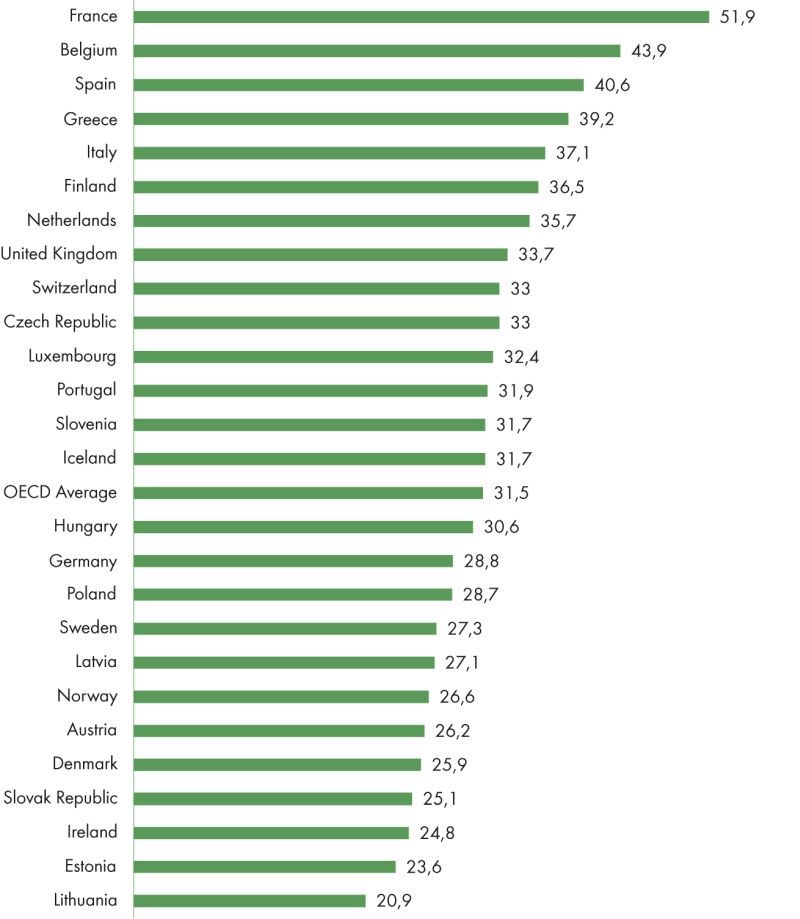· 41,5 % der deutschen Schüler besuchen Schulen, in denen der Unterricht durch eine schlechte Gebäudeausstattung (einschließlich Akustik) beeinträchtigt wird.