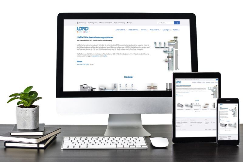 Übersichtliche Flachdachentwässerung: Die neue Website von Loro – passend für PC, Tablet oder Smartphone.