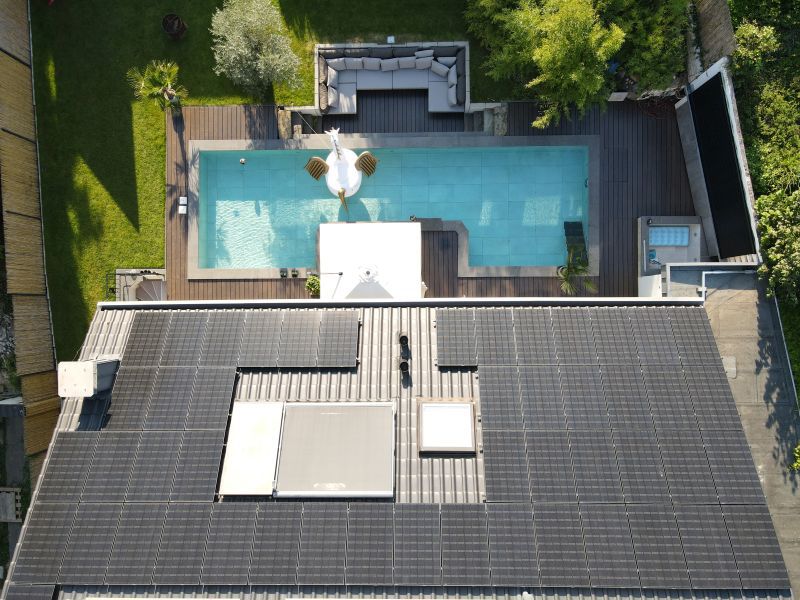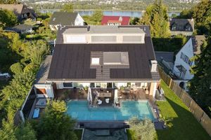 Besucher und Seminarteilnehmer aus dem Nachhaltigkeitsbereich können sich künftig von dem 25,80 kWp-PV-System inspirieren lassen, welches sowohl von der Straßenseite durch die traufseitige Fassadenbebauung prominent sichtbar ist und auch im Gartenbereich einen besonderen Blickfang bereithält – hier können Besucher eine Glaswand mit vertikal verbauten Modulen und überfließendem Wasser bestaunen.