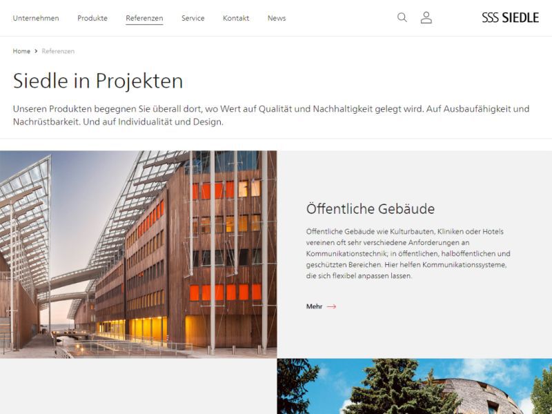 Information und Inspiration rund um die Gebäudekommunikation 19.05.2021Siedle hat seinen Webauftritt runderneuert. Auf siedle.de präsentiert der Spezialist für Gebäudekommunikation seine Inhalte in neuem Design. Die Darstellung ist übersichtlicher, klarer strukturiert und für mobile Endgeräte optimiert.