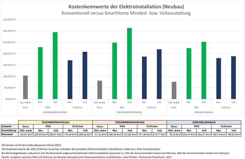 Ergänzend zu den Kosten eines „Smart Home“ wurden auch Kostenkennwerte für eine klassische Elektroinstallation ermittelt.