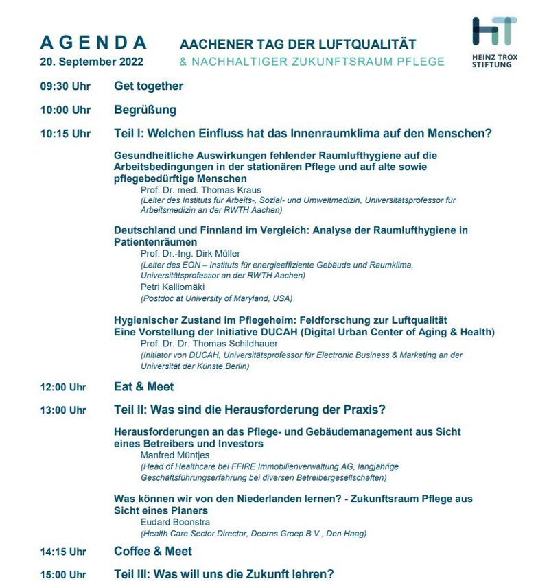 Symposium zu guter Luft und Nachhaltigkeit in stationären Pflegeeinrichtungen